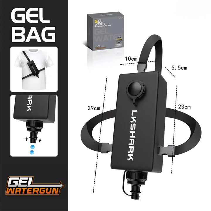 Napełnij worek, podłącz go do swojego Gel Blastera, naciśnij: kulki wychodzą natychmiast. Idealne na długie sesje gry bez konieczności przeładowywania co dwie minuty.